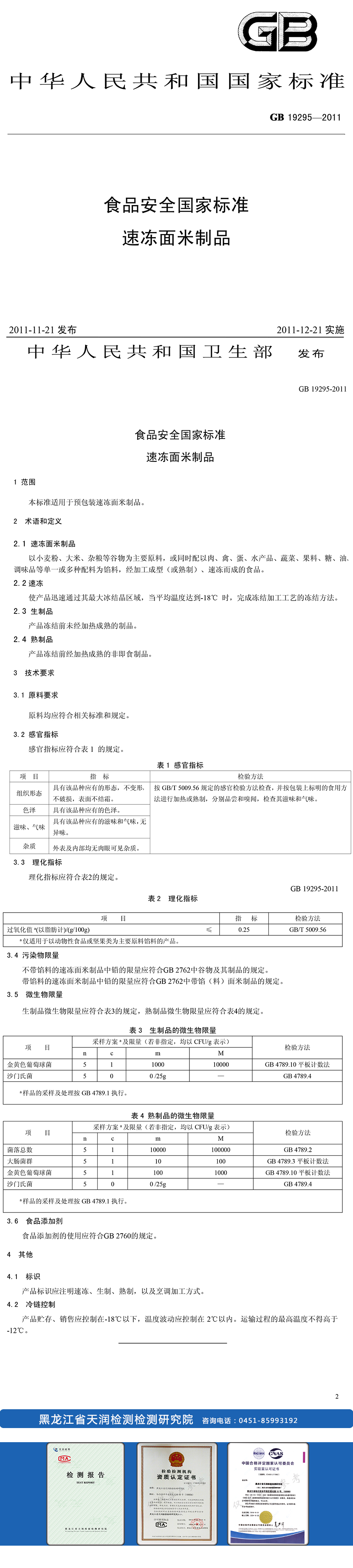 速凍面米制品檢測標(biāo)準(zhǔn)
