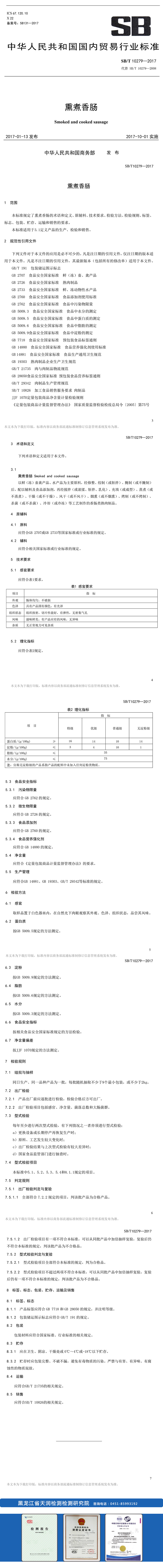 熏煮香腸檢測(cè)標(biāo)準(zhǔn)