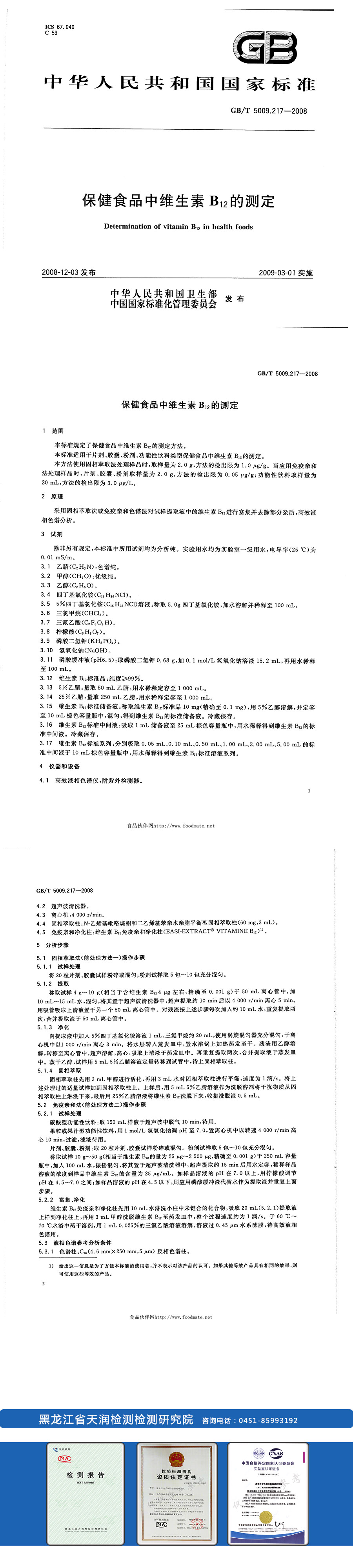 本標(biāo)準(zhǔn)規(guī)定了保健食品中維生素B12的測定方法。本標(biāo)準(zhǔn)適用于片劑、膠囊、粉劑、功能性飲料類型保健食品中維生素B12的測定。