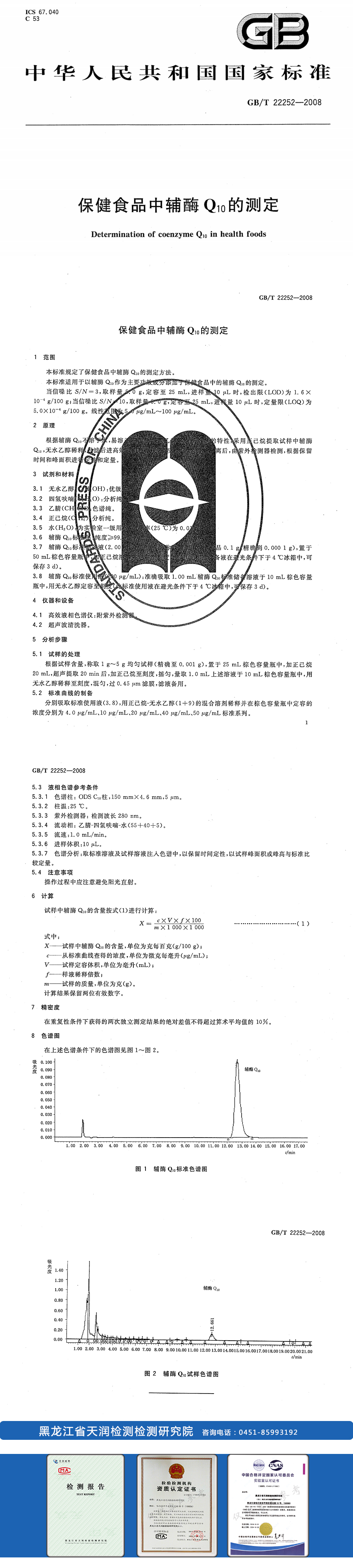 保健食品中輔酶Q10的測定