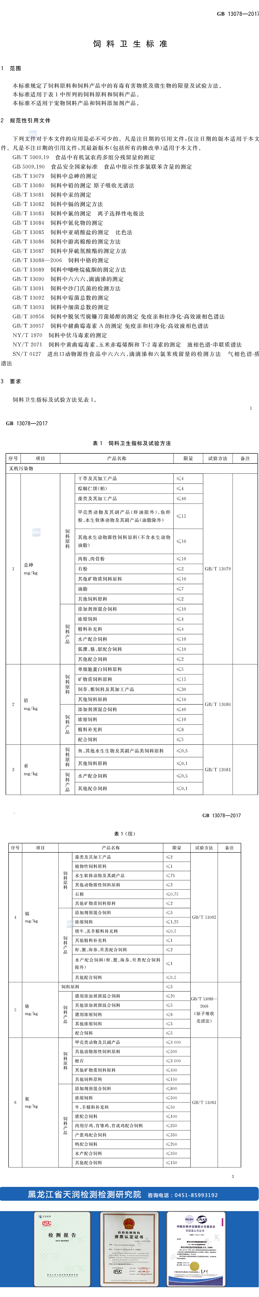 本標準規(guī)定了飼料和飼料產(chǎn)品中的有毒有害物質(zhì)及微生物的限量及試驗方法。本標準適用于表1中所列的飼料原料和飼料產(chǎn)品。本標準不適用于寵物飼料產(chǎn)品和飼料添加劑產(chǎn)品。